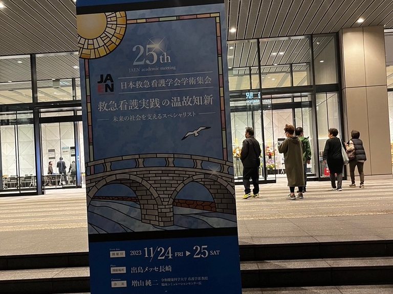 11月23日、24日に長崎で開催された、日本救急看護学会学術集会に参加しました。認定看護師教育課程の恩師が大会長を務められたので、ほんの少しでも恩返しになればと思いスタッフとしての参加をさせていただきました。また、交流集会で今の私の活動についてお話しさせていただく機会もいただけました。聴講してくれたた友人からは、「面白かった。いいものを見せてもらった。」と、褒めているのかディスっているのか分からない評価を受けたりしましたが、面白くないよりはいいかと自分を納得させました。先日、学会のオンデマンド配信が始まったので自分の発表を聞いてみましたが、もっと学術的に伝えられることがあったのだろうと反省しかない内容でした。今後、短時間で講演するような機会があるならば、発表前に一度、自分の発表を録音して聞いてみるなどすれば、より良い発表ができるための準備ができるのかな、と思ったところです。