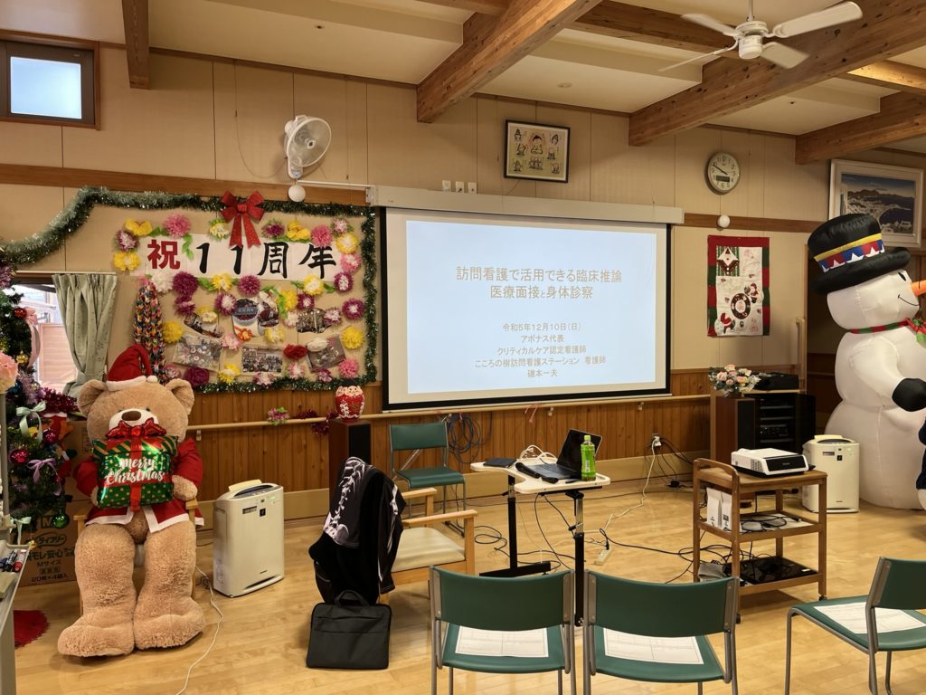 12月10日は防府のコミュニティプレイス生きいきというところで、山口県の訪問看護のレジェンド、原田典子さんが主催している「原田塾」で「訪問看護で活用できる臨床推論 医療面接と身体診察」という表題で講師を務めさせていただきました。今年度から始めた1年間を通して行う試行事業のようで、1ヶ月に一度そのテーマのスペシャリストが講義を行うということでした。本当に著名な方々が講義をされている中で私などがご指名いただけたのは、山口県内で訪問看護ステーションの管理者、救急認定看護師として約8年間活動していたからだと思います。県内の様々なステーションなどから受講されている12名の方々は、訪問看護の管理者であったりグループの経営者だったりと、モチベーションの高い方ばかりでした。お昼を挟みましたが、あっという間の7時間。喋り倒しましたが、みなさんすごく熱心に受講してくださいました。このような機会をいただけたことに大変感謝しているところです。
