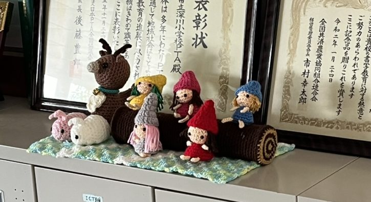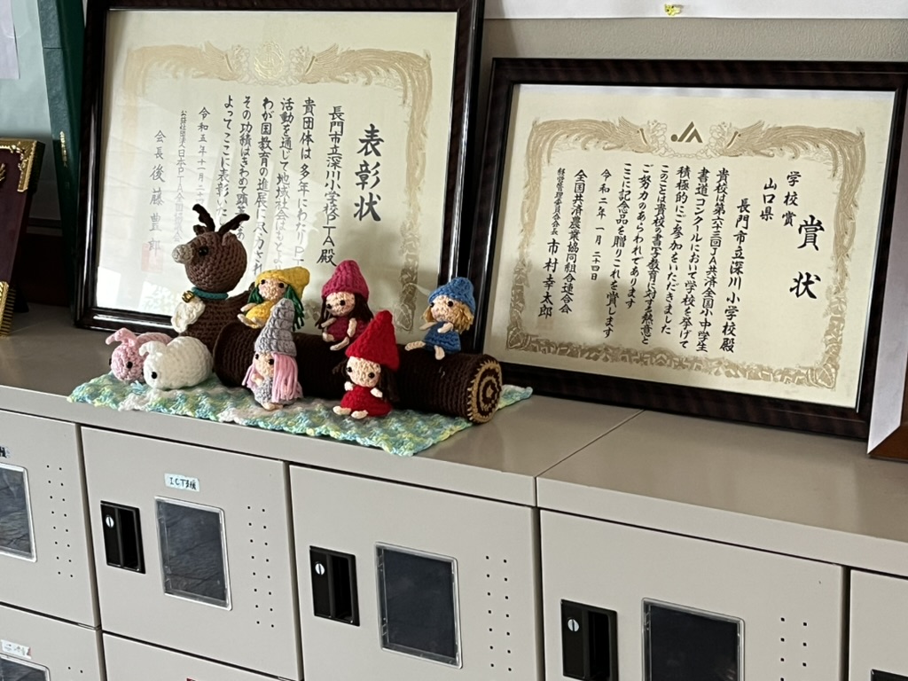 総合支援学校で役立ててほしいとお渡ししたところ、総合支援学校だけでなく小学校の児童もぬいぐるみで遊んだりしてくれているようでした。それだけでも感謝ですが、本日、小学校の玄関に飾ってあるのを見つけて、本当にありがたいな、と感謝の気持ちでいっぱいに…。個人情報に触れてしまうことが多いので、あまり写真を載せられませんが、ぬいぐるみを寄付してくださった利用者さんに、良い報告ができます。