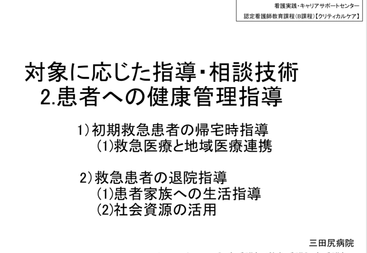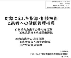 川崎医療福祉大学のキャリアサポートセンターで、クリティカルケア認定看護師になる方を対象に「対象に応じた指導・相談技術 患者への健康管理指導」という内容で一コマお話ししてきました。