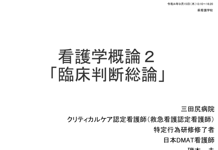 「臨床判断総論 講師」萩看護学校(2022.9.15)